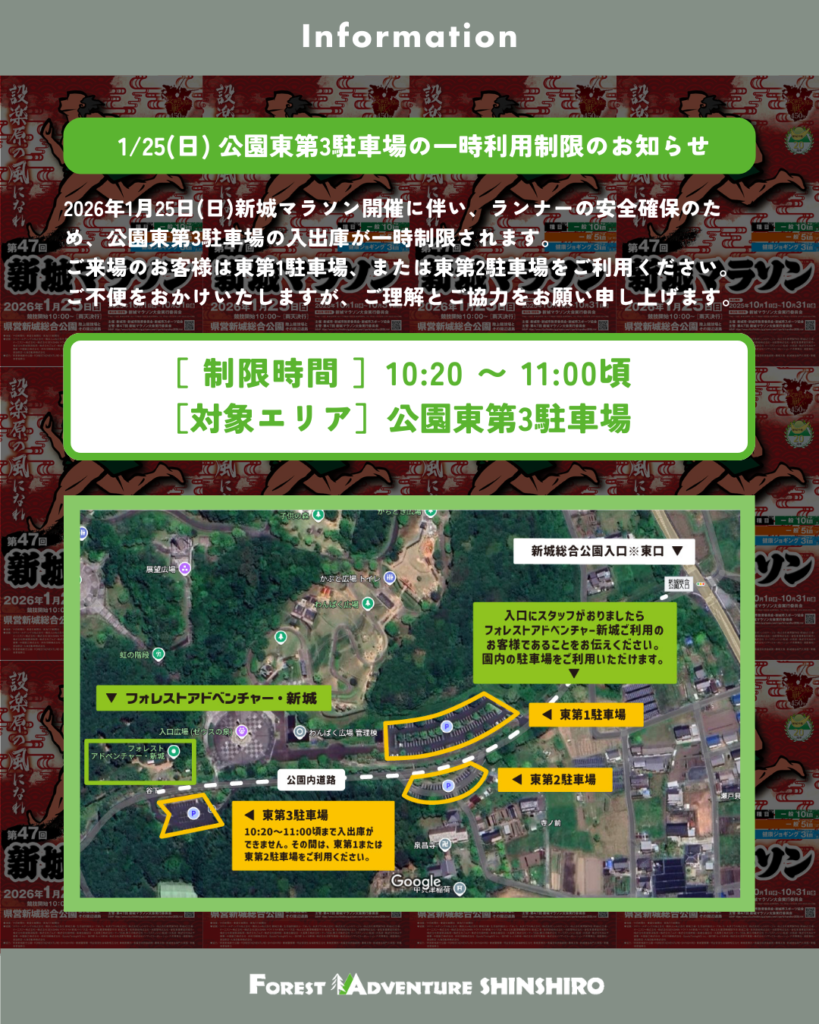 【重要】1/25(日) 公園東第3駐車場の一時利用制限のお知らせ