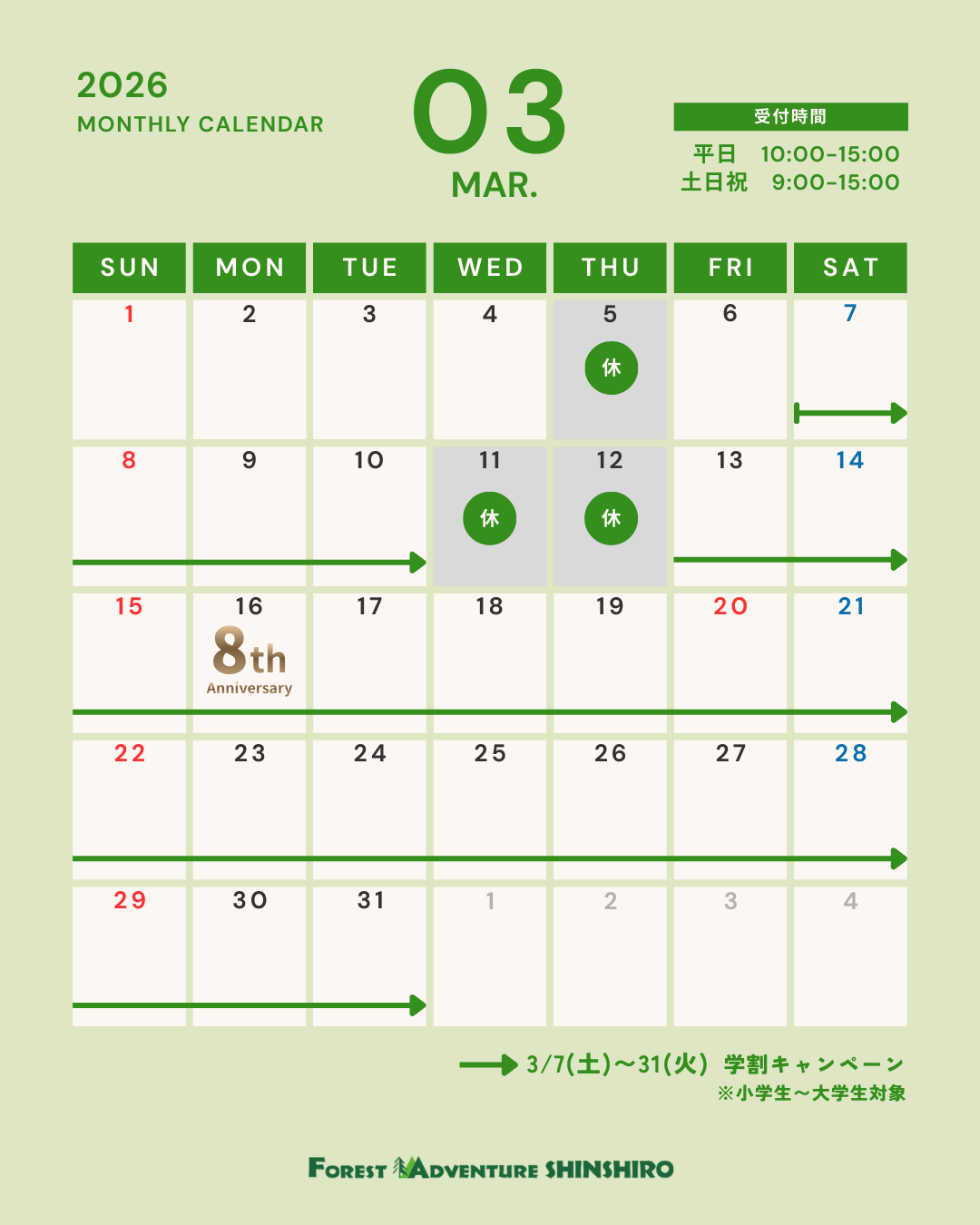そして3月のイベントは、7(土) 〜 31(火)の期間中、