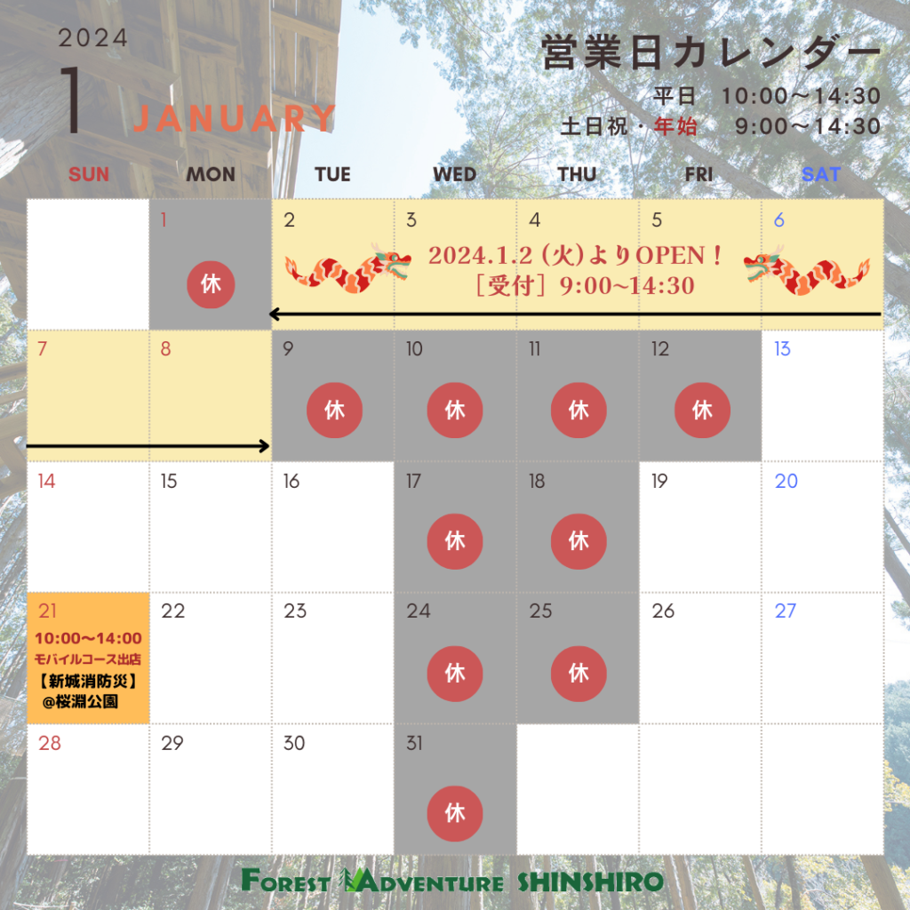 2024年1月の営業カレンダー