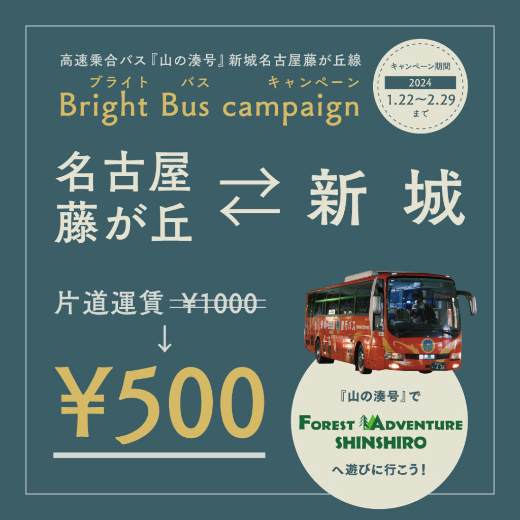 名古屋藤が丘から新城市まで高速バス1本!『山の湊(みなと)号』をご存知でしょうか?1月22日から、『山の湊号』のお得なキャンペーンが開催中です👏 もともと「名古屋藤が丘」→「もっくる新城」間が片道運賃1000円とお得に利用できる『山の湊号』ですが、助成券を受け取り、乗車時に渡すだけで、さらにオトクな片道運賃500円になります😳 最... -