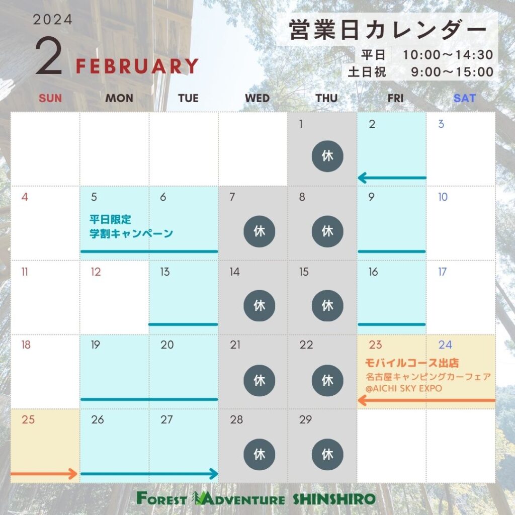 2月営業日カレンダー🗓️