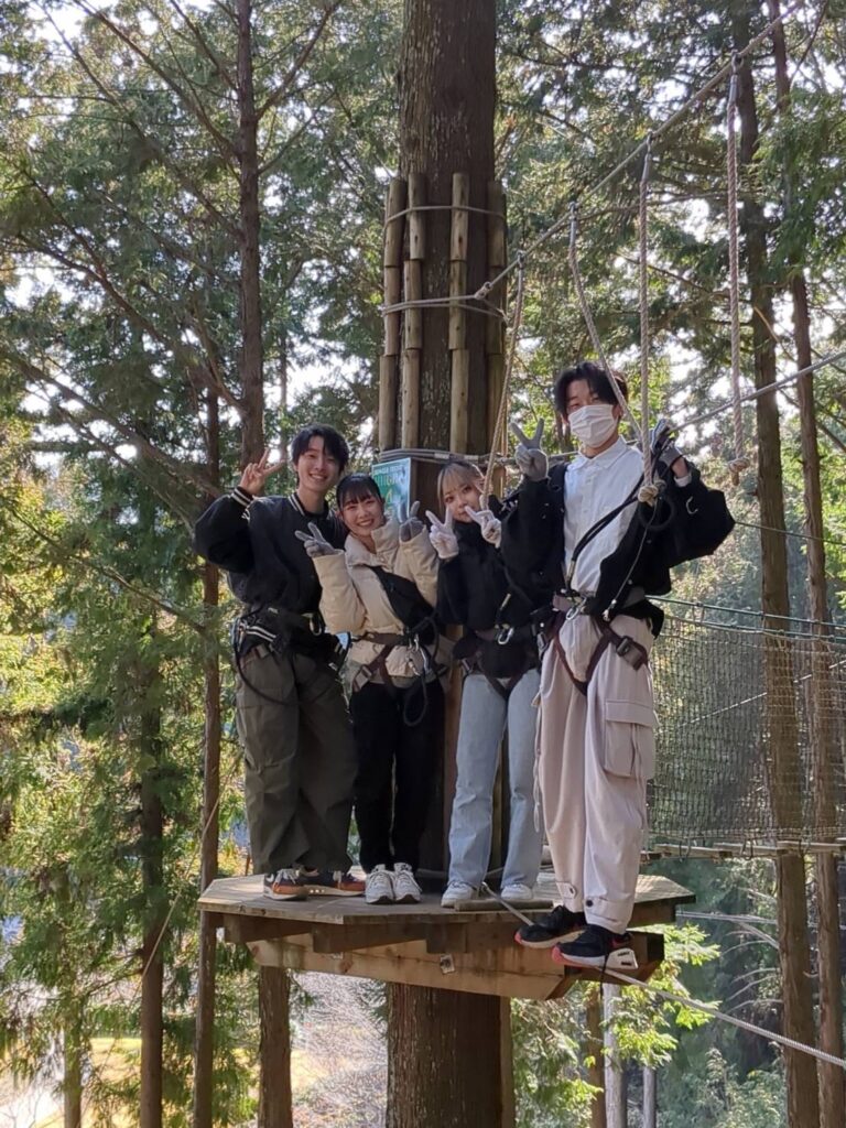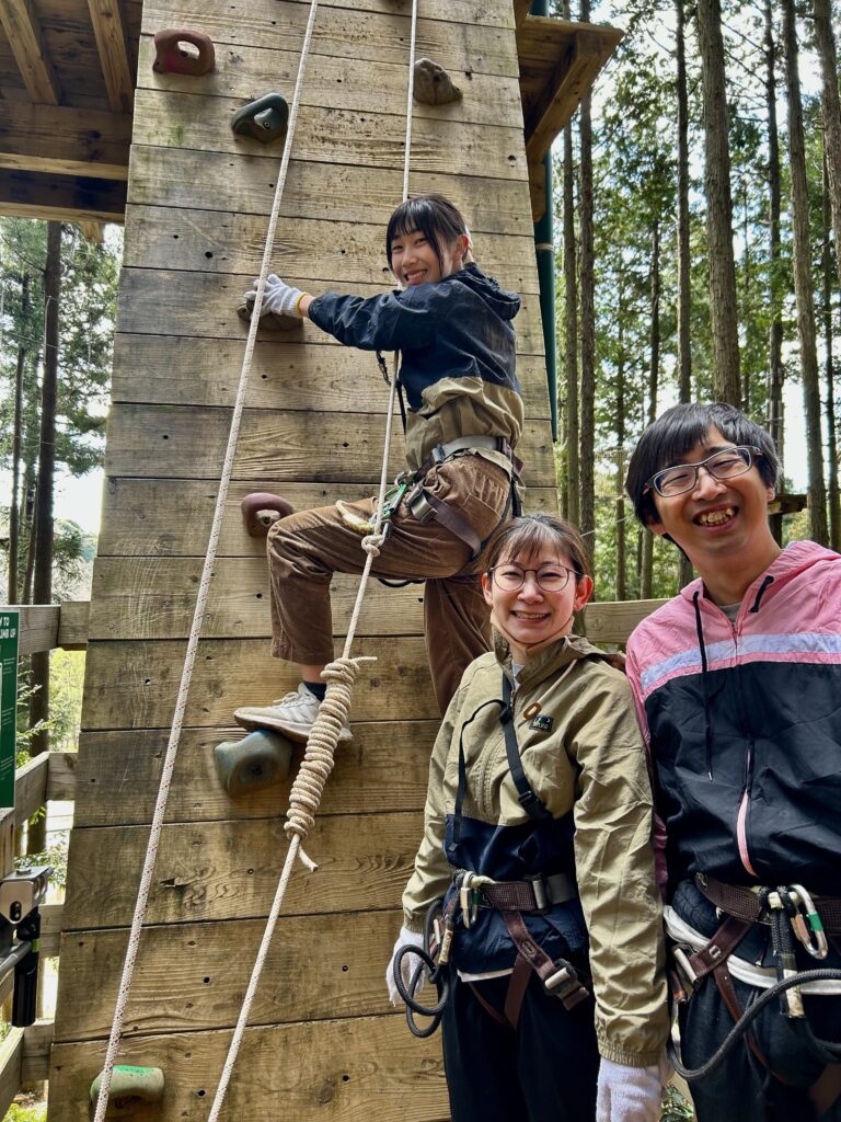 「ジップラインで池越えが自然を感じられて、普段なかなかできないので初めての体験で楽しかった。」 「網のところにバーンと当たるのが怖かった。」 「垂直のボルダリングが怖かった!!」 -
