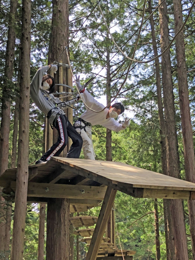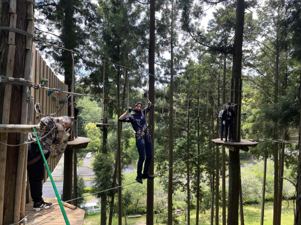 「初めは怖かったけど、最後は楽しく滑れました!」 「池超えジップラインが1番楽しかったです!」 「自然の中で沢山遊べて良かったです!」 「大学生になりきれました笑」 -