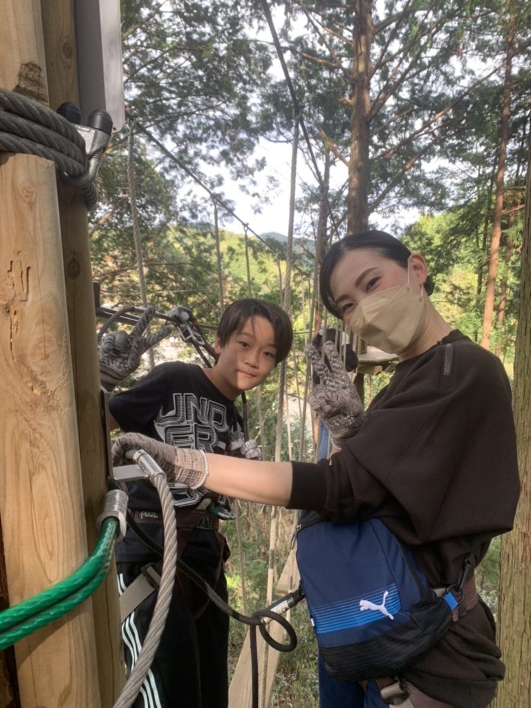ジップスライドが楽しかった! 着地成功させたくて夢中になってた! ターザンは怖かった。 -