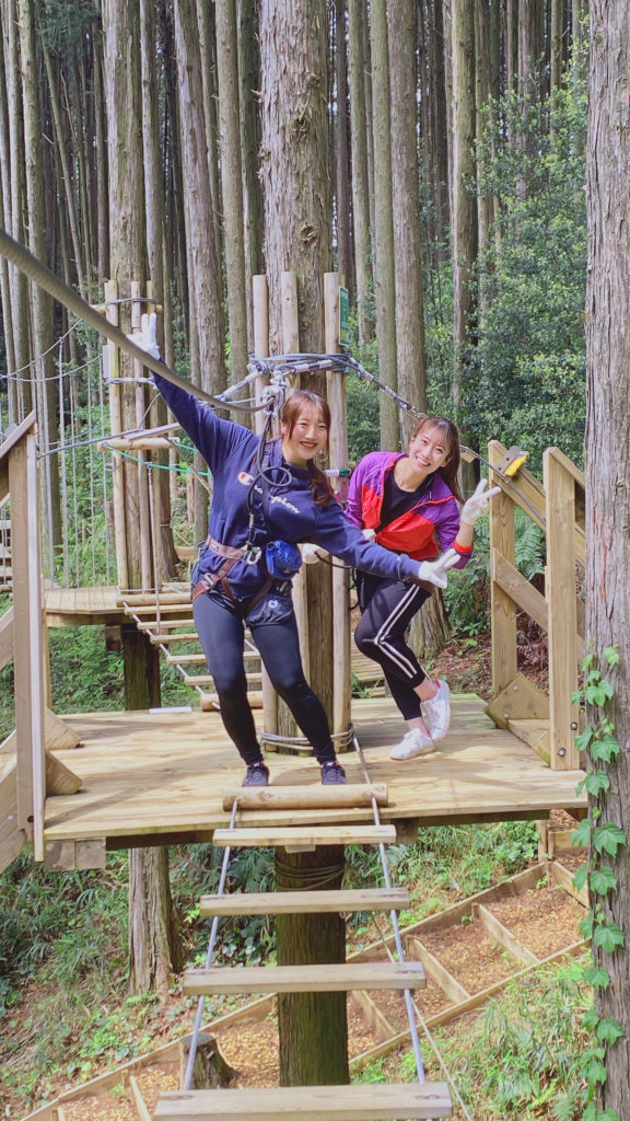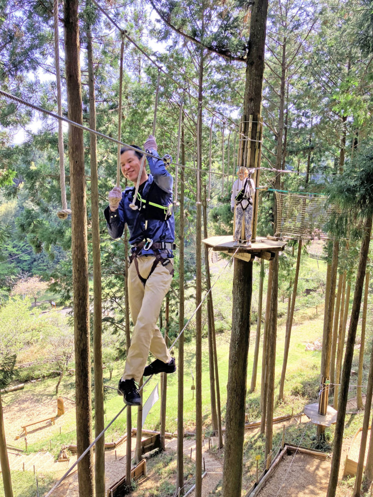 「4コース目、最後の綱渡りが一番怖かった。」 「5コース最初の綱渡りが汗だくになって大変でしたけど、楽しかった!」 -
