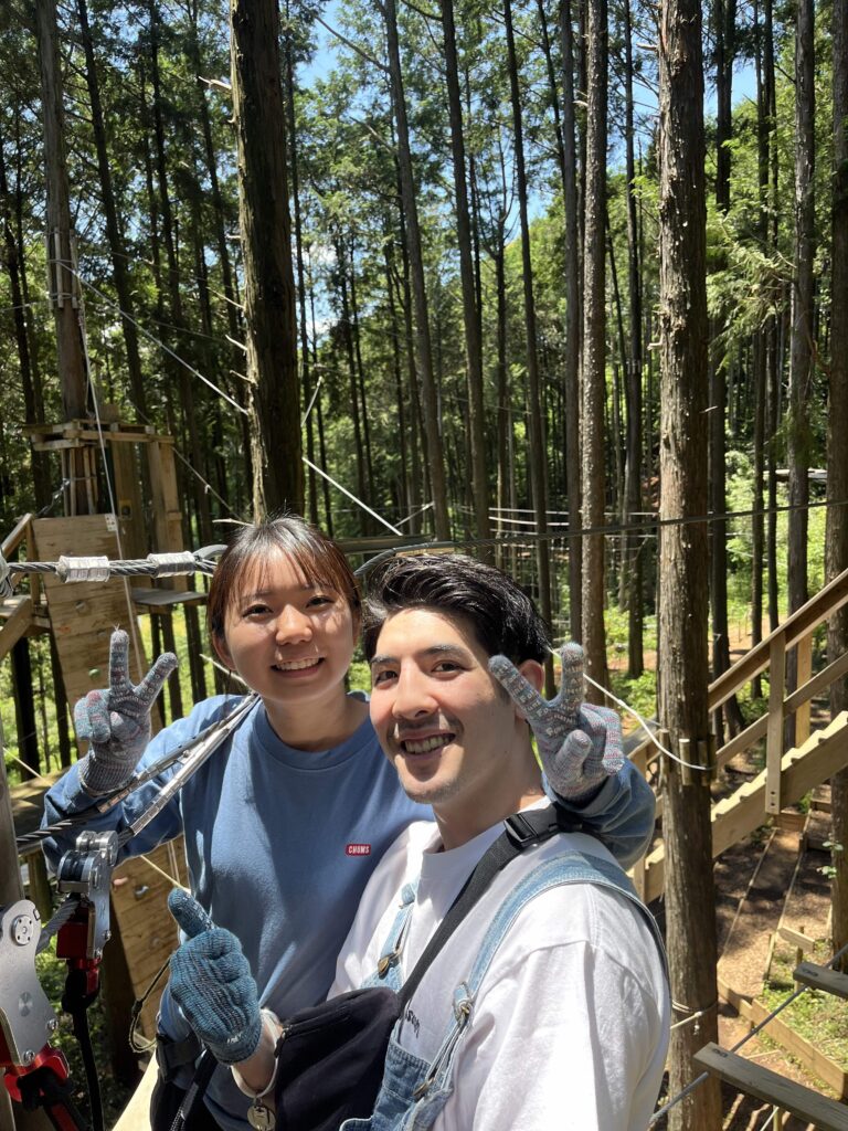 「高い所が苦手でも楽しめました!ジップスライドでは靴もズボンもドロドロになったけど、汚れてもいい服で来ていて良かったです。涼しくて心地よい気候の中、森を駆け回っていい思い出になりました。」 -