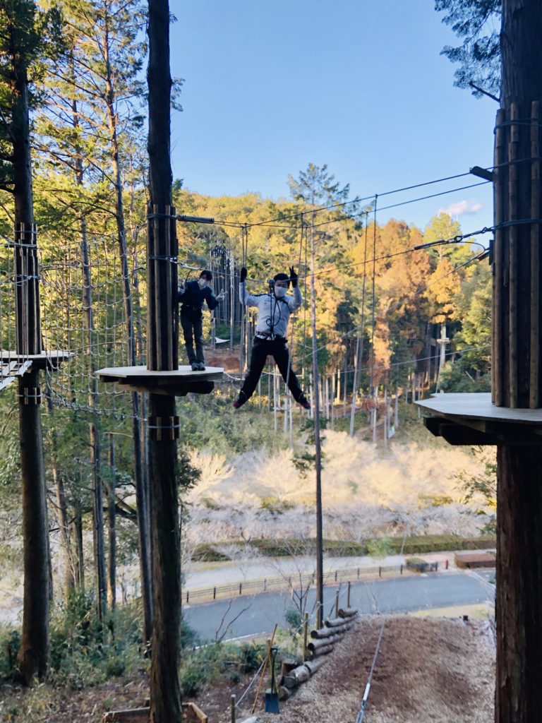 「横のボルダリングのところが楽しくてそのあとのケーブル1本の綱渡りが怖かった! 終わったあと腰がイテテテってなるくらい身体使いました。」 -